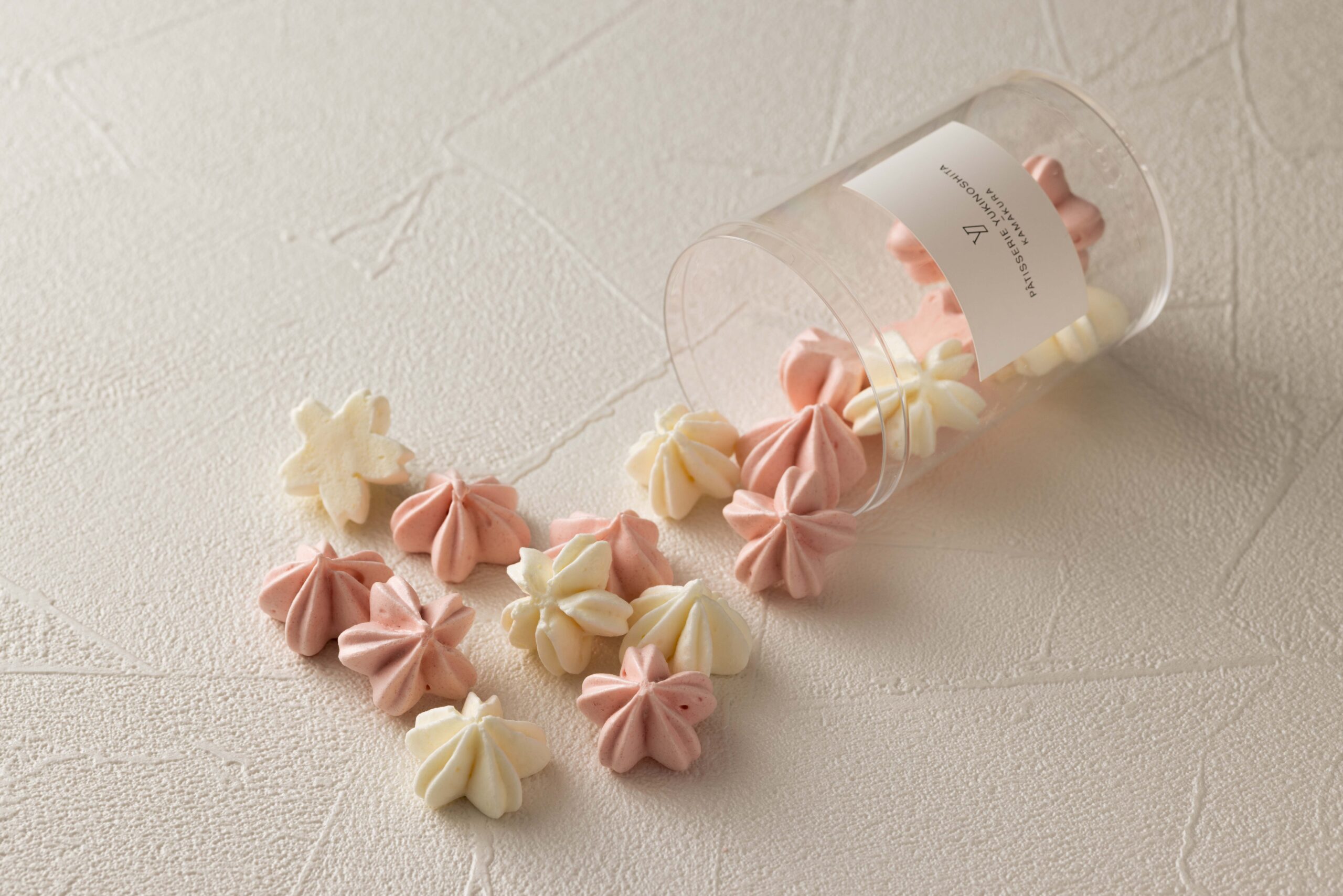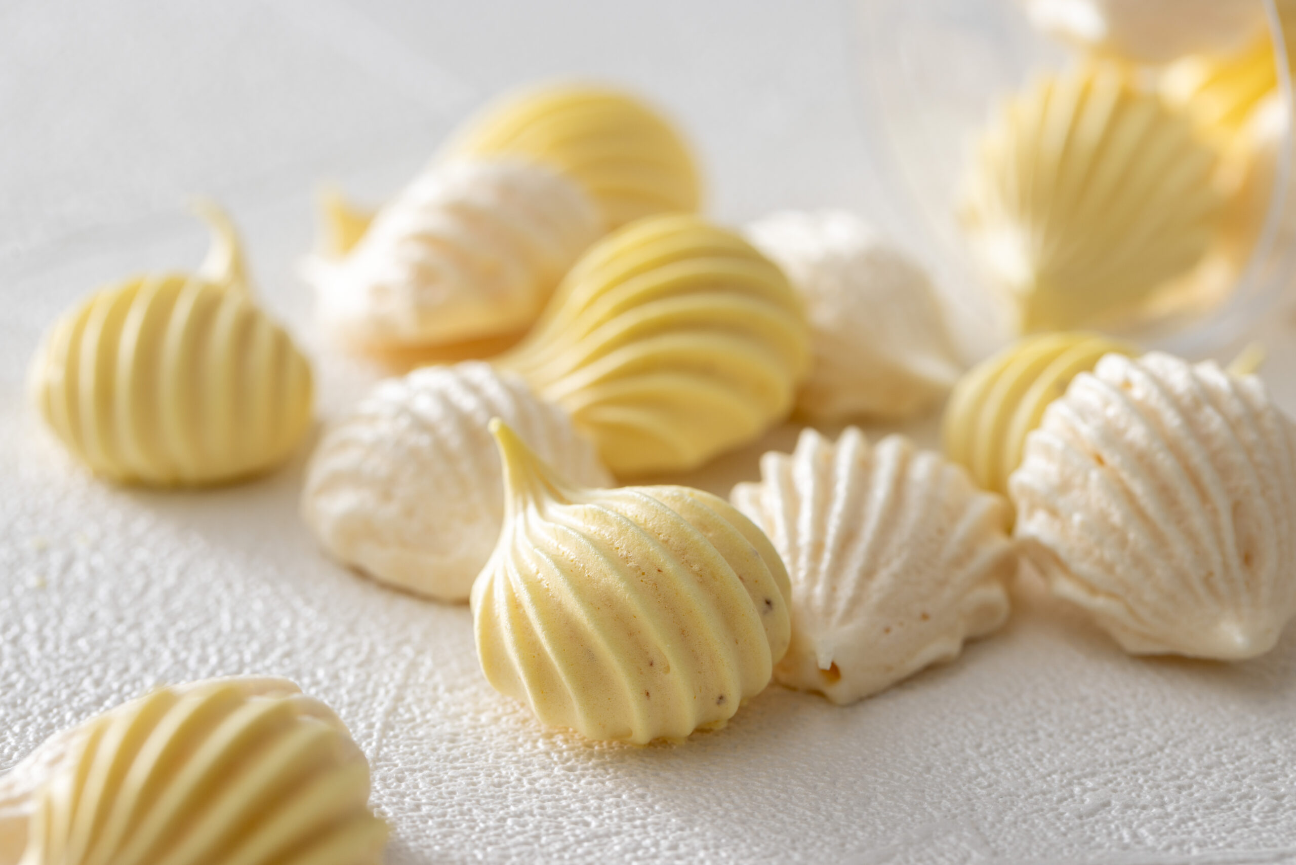 ココナッツ味とパッションフルーツ味のメレンゲ。