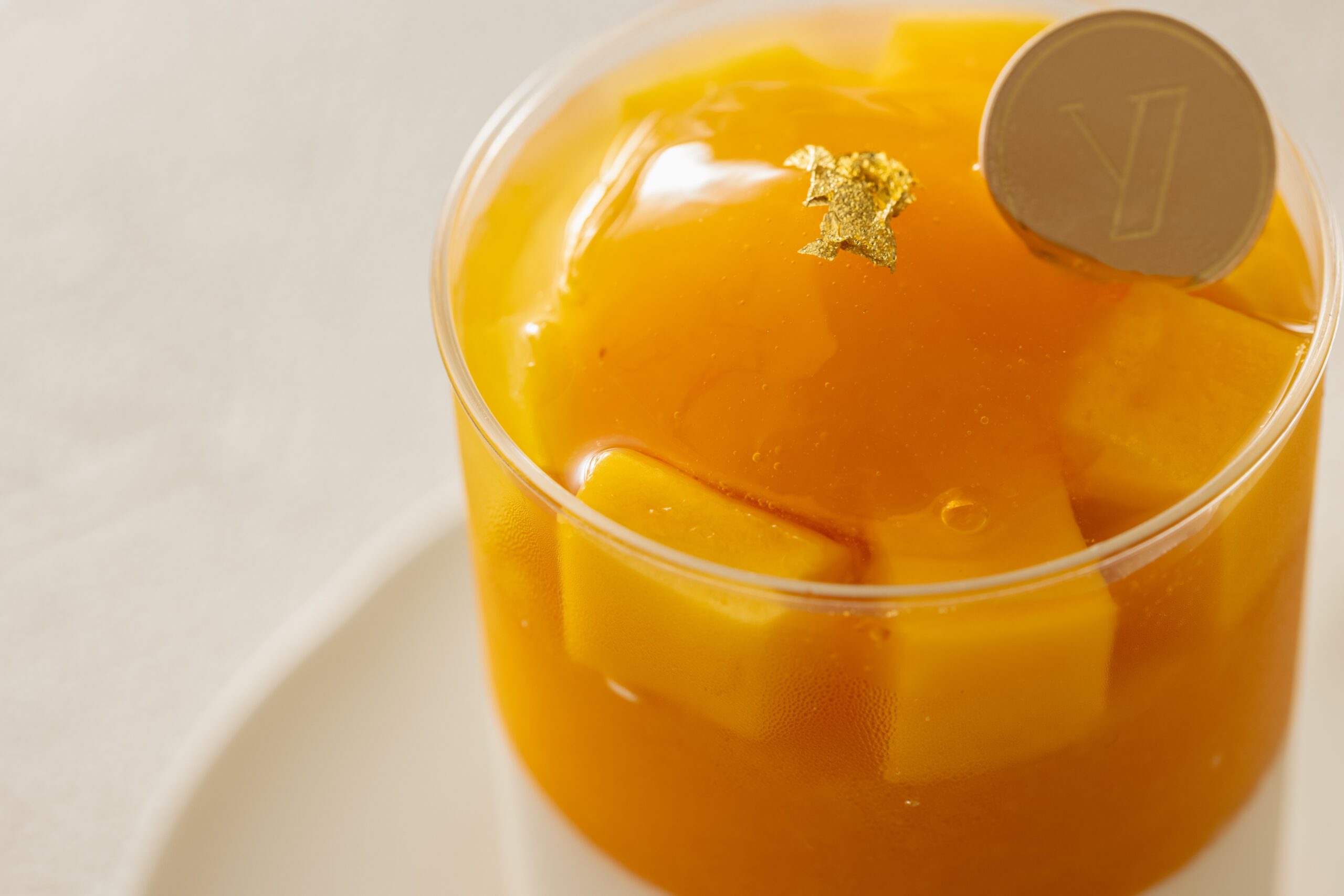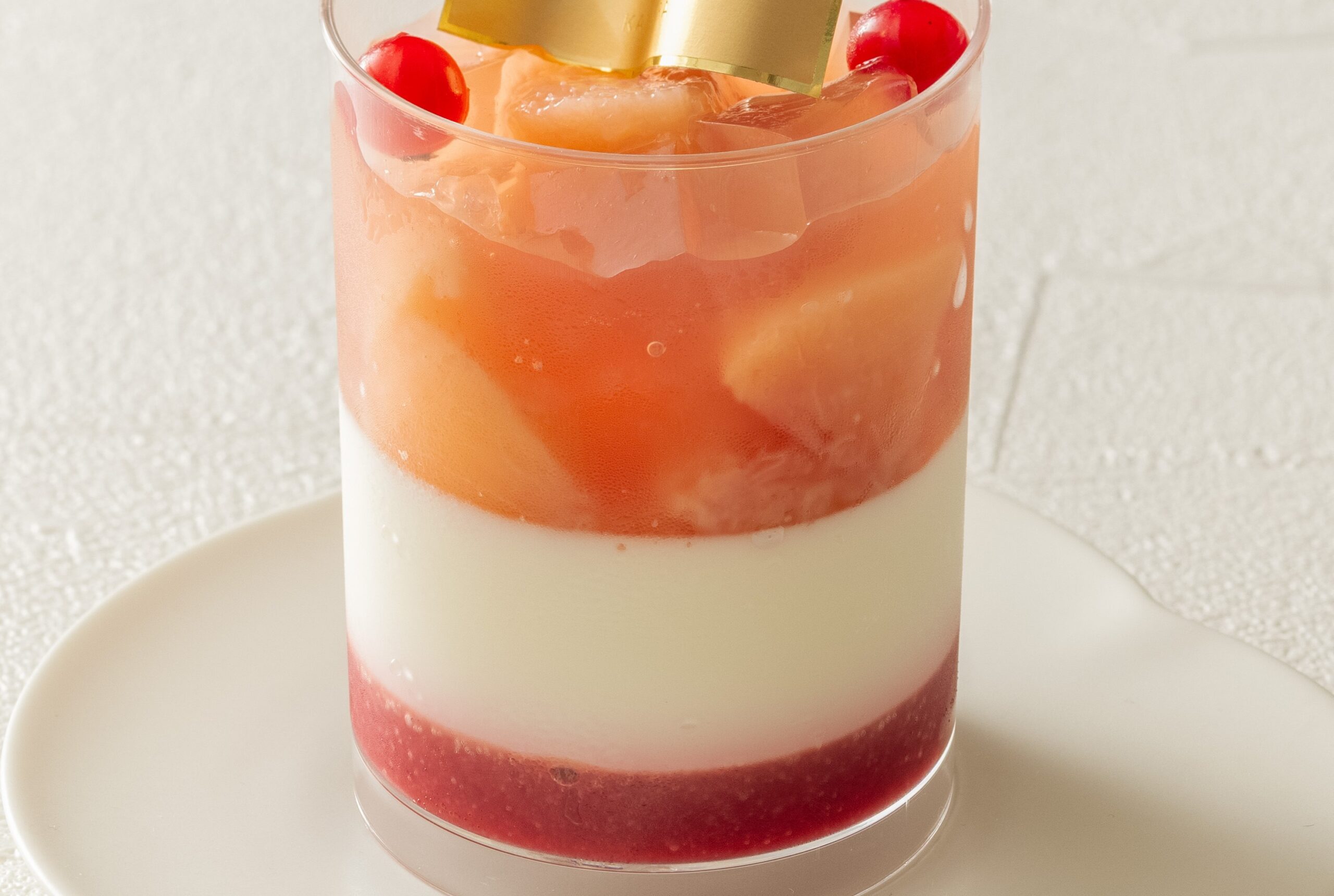 桃の自家製コンポートとジュレを合わせたヴェリーヌ。