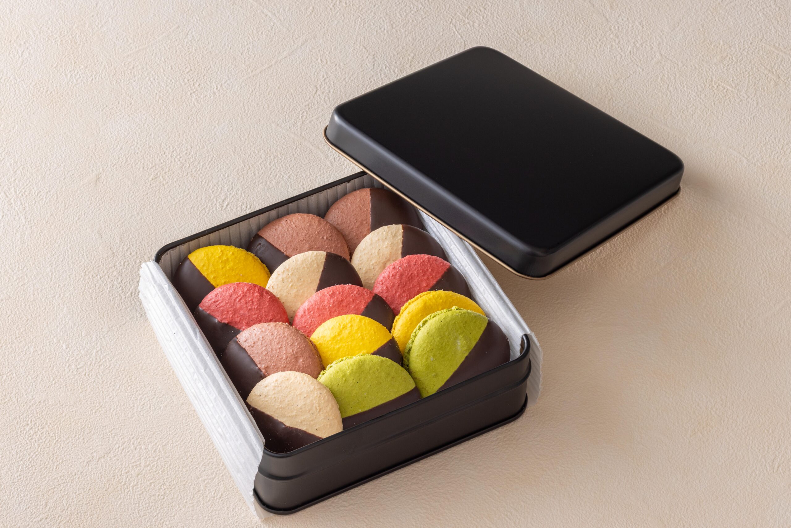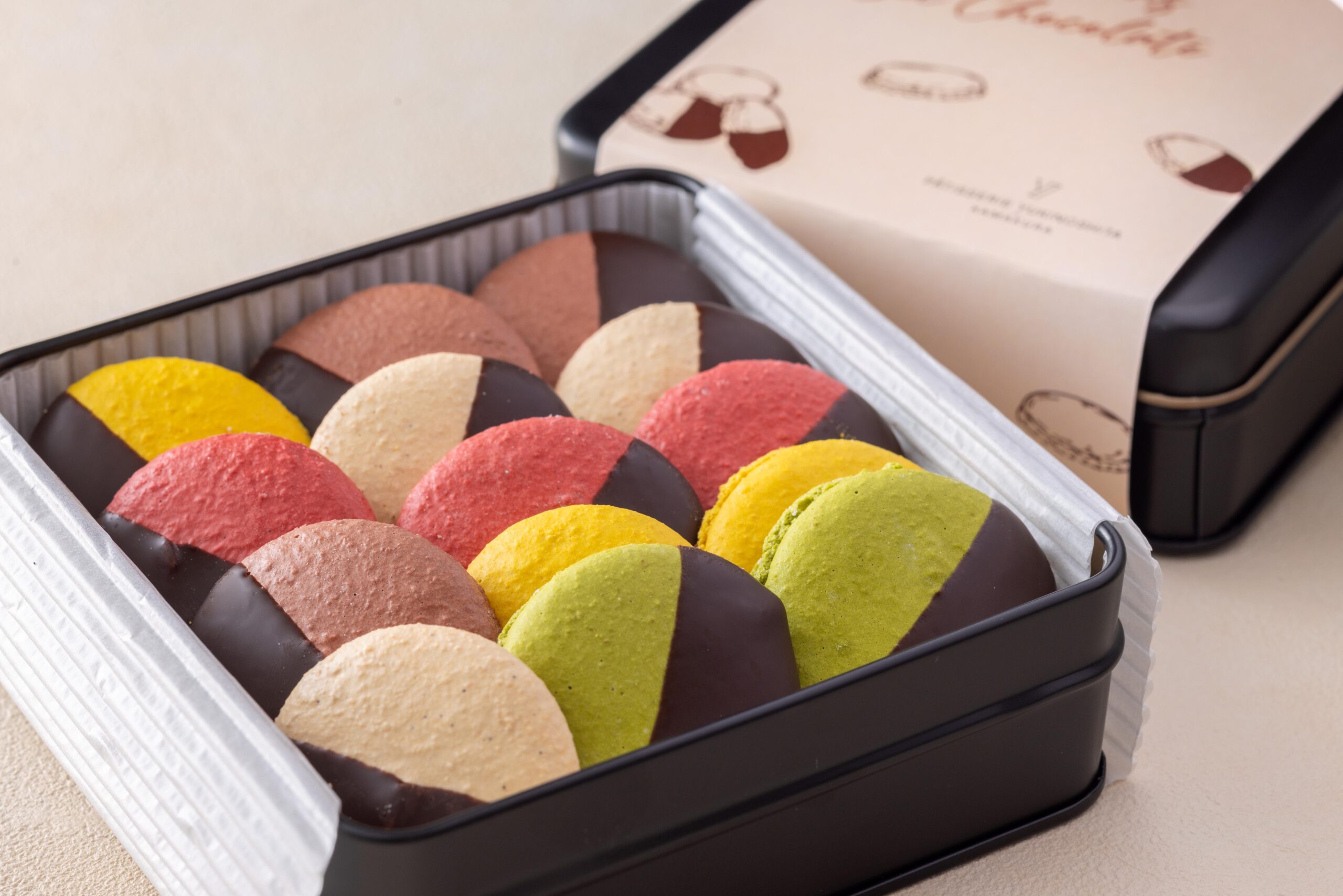 定番商品のマカロンにチョコレートをコーティングした期間限定商品